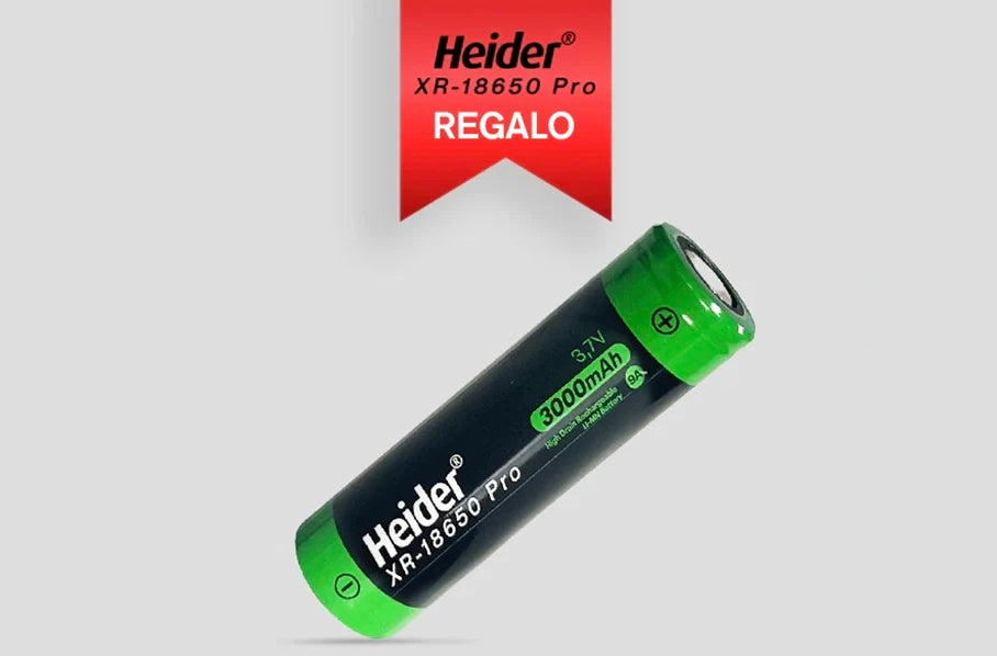 La batería recargable Heider XR-18650 Pro, con una capacidad de 3000mAh, ofrece el más alto rendimiento en la categoría de linternas a nivel mundial. Está certificada CE y ROHS.